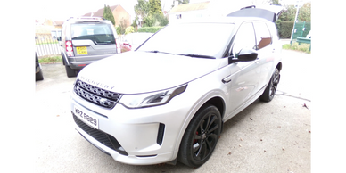 Discovery Sport 2.0 SE R Dynamic in Indus Silver with black leather interior and red piping.